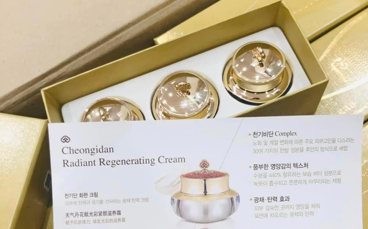 👉Kem dưỡng tái sinh da Whoo Cheongidan Radiant Regenerating kết hợp với các thành phần cây hoàng kim, sâm núi ngọc châu và lộc nhung phần cốt giúp kiểm soát tận sâu bên trong da và đem lại độ dưỡng sáng tối ưu cho bề mặt da.